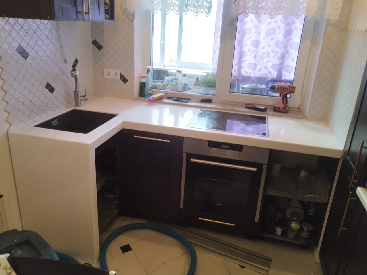 Заказывали столешницу из искусственного камня. Замерщик оперативно снял мерки и сделал лекала. Через 2 недели приехал установщик. Установка заняла 4 часа. Всё отлично, без нареканий. Компанию рекомендую.