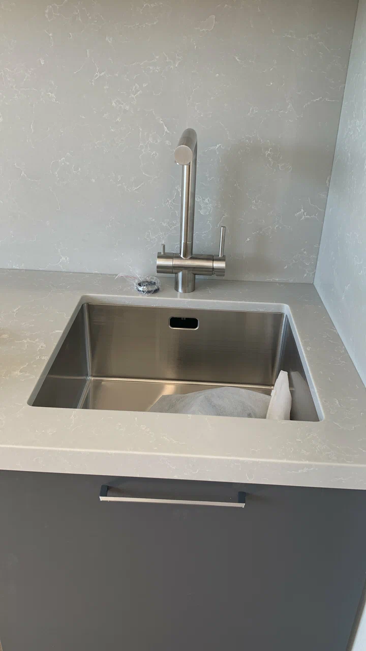 Когда пришло время менять кухонный гарнитур, пришлось задуматься и о новой столешнице. Выбор непростой. Очень уж большой разбег по дизайну и стоимости. По рекомендации обратились в компанию Unirock и не ошиблись. Большой выбор столешниц из кварцевого агломерата. В день обращения сразу пришел замерщик, а через 10 дней наш заказ был готов. Пришли ребята, все быстро и аккуратно установили. За неделю до установки мы отвезли раковину на производство, чтобы нам под размер сделали вырез для вклейки мойки. Спасибо большое за красивую и качественную столешницу.