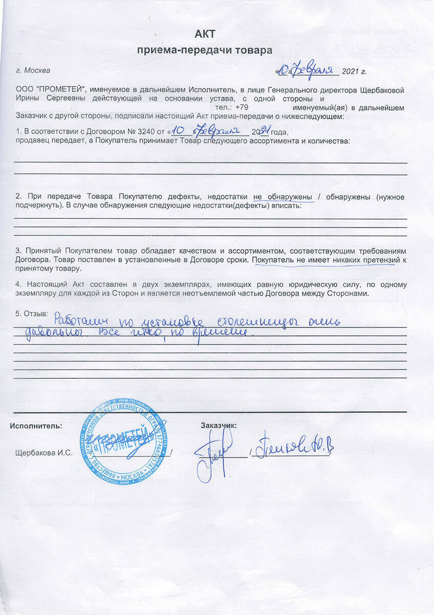 Мы очень ценим обратную связь от клиентов и с гордостью делимся отзывами о нашей работе. Каждый клиент для нас — наивысшая ценность и мы делаем всё, чтобы оставить хорошее впечатление о себе и своей продукции.