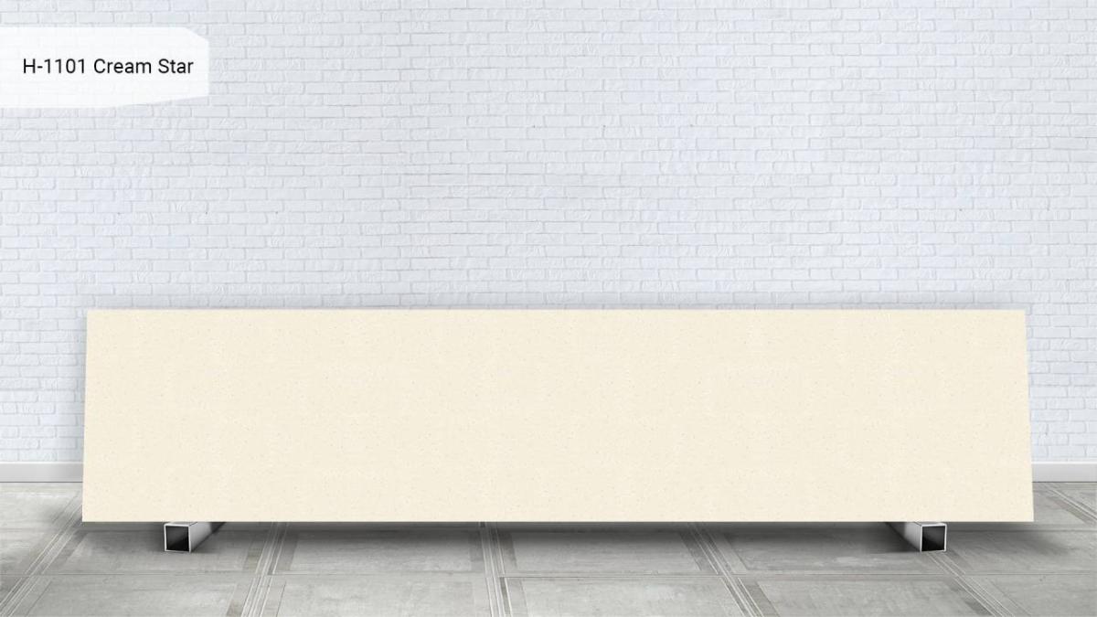Formax Cream Star (H-1101) — светлый кремово‑бежевый оттенок с тёплым молочным подтоном, цвет выглядит естественным и сбалансированным, без резкой желтизны и без холодной серости, текстура выполнена в деликатной минеральной стилистике с характерными декоративными включениями, по поверхности распределены, мягкие кремовые и молочно‑бежевые участки, мелкие минеральные вкрапления тёмно‑серых и графитовых оттенков, полупрозрачные кварцевидные элементы, тонкая равномерная зернистость, что делает Formax Cream Star идеальным для создания расслабляющей атмосферы в любом помещении.