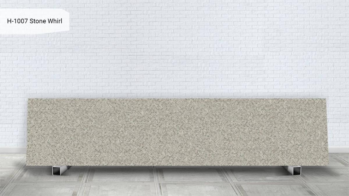 Formax Stone Whirl (H-1007) — оттенок на базе серо‑бежевой или каменной гаммы с мягкими природными полутонами, цвет сбалансированный и многослойный, без резких контрастов, благодаря чему материал выглядит естественным, благородным и гармоничным, текстура выполнена в стилистике плавных минеральных завихрений, формирующих характерный природный рисунок, по поверхности можно заметить, мягкие серо‑дымчатые переходы оттенков, светло‑бежевые и каменные участки, полупрозрачные кварцевидные включения, тонкую минеральную зернистость, что делает Formax Stone Whirl идеальным для создания расслабляющей атмосферы в любом помещении.