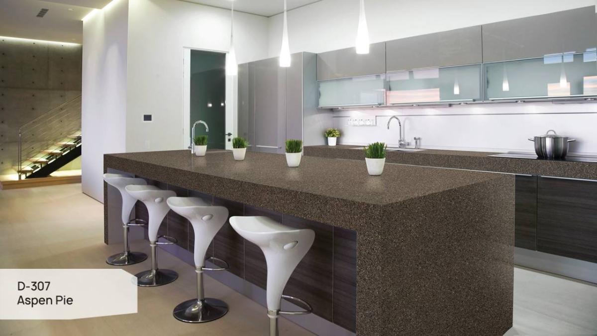Акриловый камень Grandex Aspen Pie обладает высокой ударной прочностью, а благодаря своей бесшовности и ремонтопригодности он идеально подходит для создания столешниц сложных форм и больших размеров. Материал устойчив к бытовым повреждениям, а его способность восстанавливаться позволяет надолго сохранить безупречный вид.