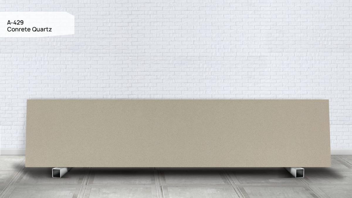 Grandex Conrete Quartz (A-429) — серо‑бетонный с нейтральным холодным подтоном, ровный и спокойный, без выраженной теплоте и без излишней темноты, напоминает шлифованный бетон, сохраняя при этом чистоту и визуальный порядок, текстура сформирована мелкими и средними кварцевыми вкраплениями, равномерно распределёнными по всей поверхности, вкрапления добавляют материалу глубину и минеральный характер, создавая эффект «живого» бетона, но без грубой или хаотичной графики, что делает Grandex Conrete Quartz идеальным для создания расслабляющей атмосферы в любом помещении.