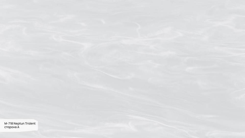 Grandex Neptun Trident (M-718) — серый с мягким голубоватым подтоном, оттенок спокойный и холодный, без излишней темноты и без резкой синевы, цвет воспринимается современно и нейтрально, напоминая морскую гладь в пасмурную погоду, на поверхности присутствуют мягкие молочно‑белые разводы, плавно распределённые по плоскости, формируют деликатный волнообразный рисунок, создающий ощущение движения воды и лёгкой глубины, что делает Grandex Neptun Trident идеальным для создания расслабляющей атмосферы в любом помещении.