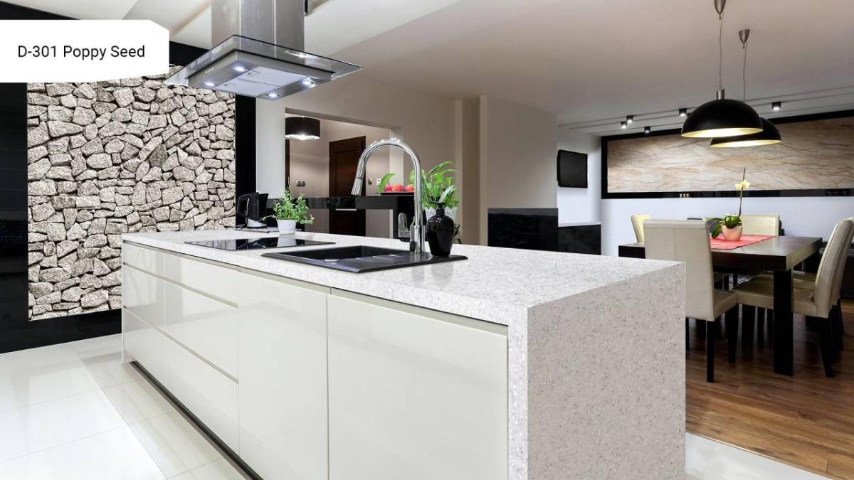 Акриловый камень Grandex Poppy Seed — это современный и эстетичный материал, который идеально подходит для создания уютных и элегантных интерьеров. Сочетая в себе безупречную гладкость и теплоту, он становится прекрасной основой для воплощения разнообразных дизайнерских замыслов.