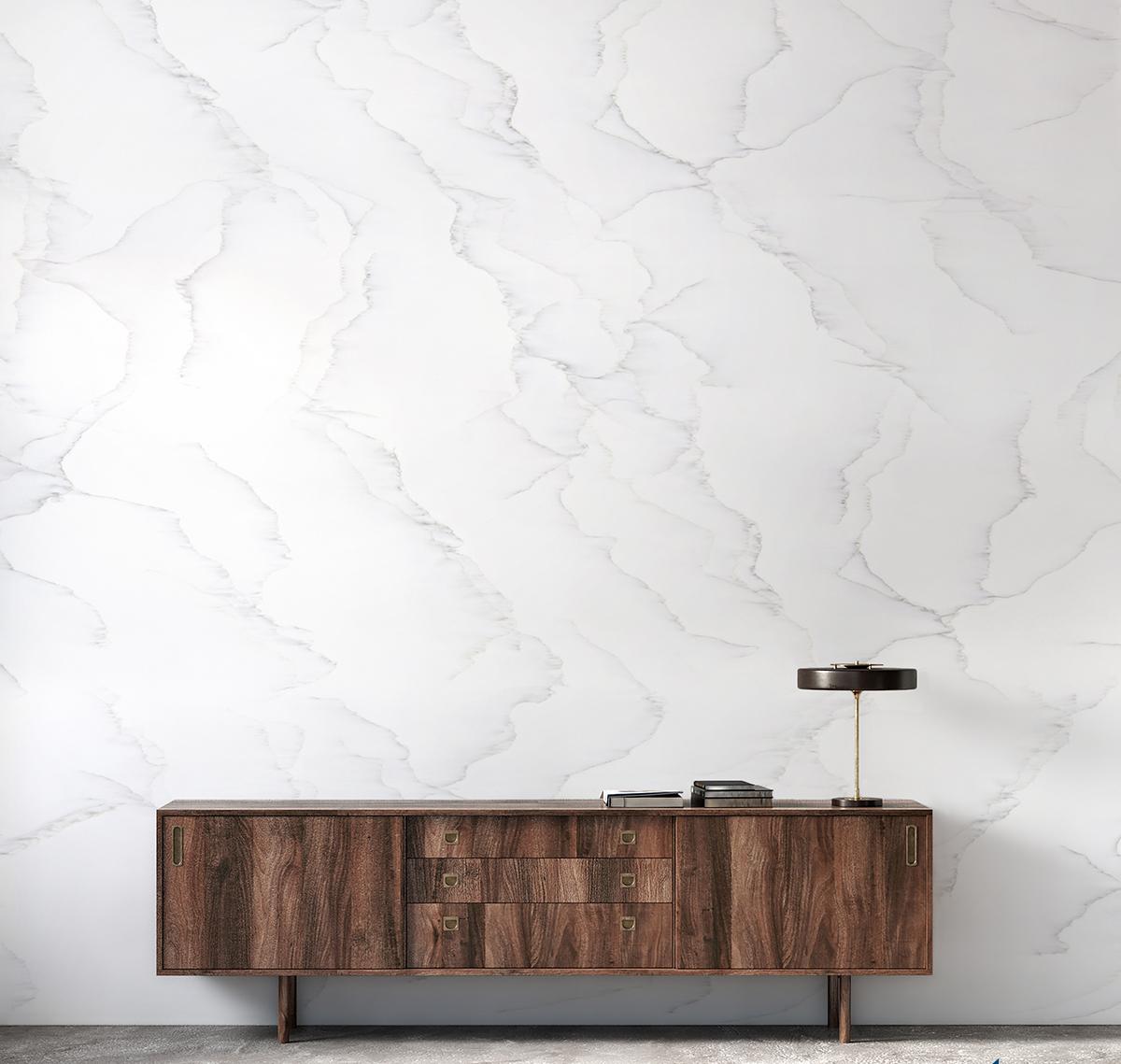 Staron Premiere Largo (VL-312) — чистый молочно‑белый с мягким нейтральным подтоном, цвет выглядит светлым, прозрачным и благородным, без выраженной желтизны и без холодной синевы, формирует идеально чистую основу, которая визуально расширяет пространство и наполняет интерьер светом, главный характер поверхности создаёт плавный прожилковый рисунок, напоминающий структуру натурального мрамора, по поверхности проходят мягкие линии и разводы, тонкие серо‑дымчатые прожилки, деликатные графитовые контуры, полупрозрачные минеральные переходы, мягкие растушёванные края прожилок, что делает Staron Premiere Largo идеальным для создания расслабляющей атмосферы в любом помещении.