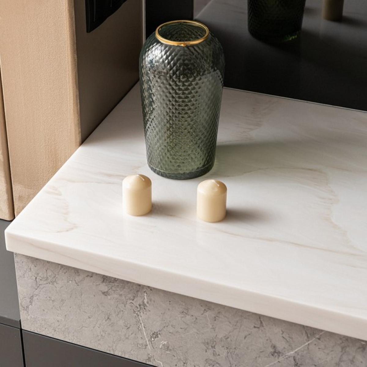 Поверхность камня непориста, не впитывает влагу и легко очищается, что гарантирует безупречную гигиеничность и простоту в уходе. Staron Supreme Latte Cream устойчив к пятнам от пищевых продуктов и косметических средств, что особенно ценно для активных зон кухни и ванной комнаты.
