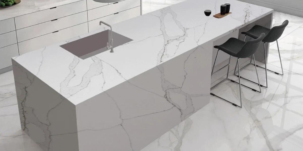 Материал не впитывает жидкости и легко очищается, что делает его гигиеничным и удобным в уходе. Imperial Quartz Calacatta Lux не боится пятен от пищи, напитков и химических веществ, что особенно важно в кухонной среде.