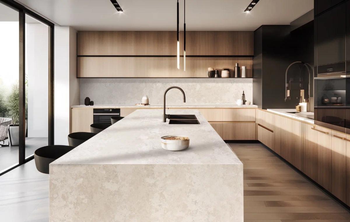 Материал не впитывает жидкости и легко очищается, что делает его гигиеничным и удобным в уходе. Imperial Quartz Dorato не боится пятен от пищи, напитков и химических веществ, что особенно важно в кухонной среде.