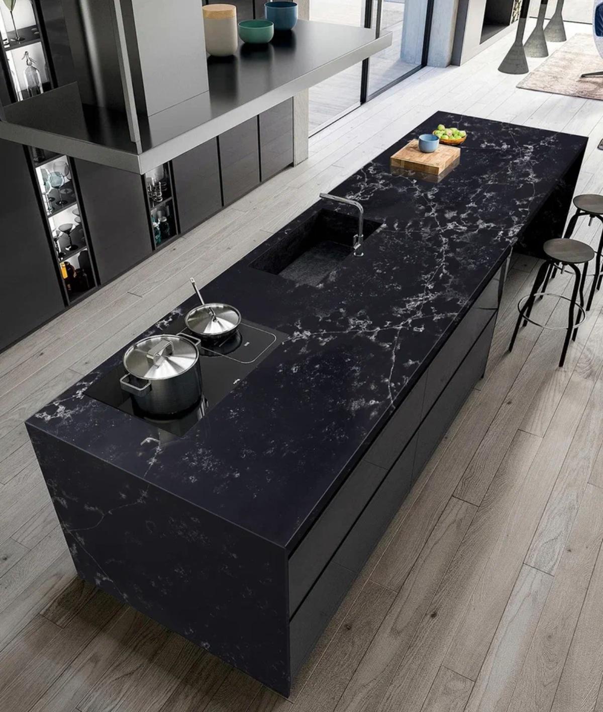 Материал не впитывает жидкости и легко очищается, что делает его гигиеничным и удобным в уходе. Imperial Quartz Grand Antique не боится пятен от пищи, напитков и химических веществ, что особенно важно в кухонной среде.