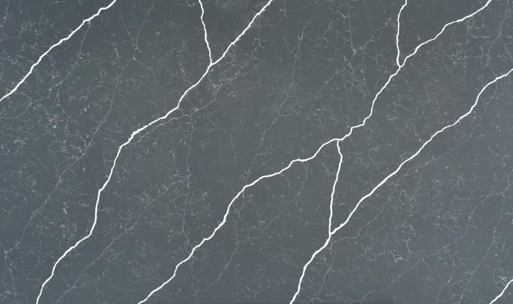 Imperial Quartz Terra Marona (8009) - холодный голубовато-серый фон напоминает слои льда и тумана, тонкие белые прожилки, словно морозные узоры на стекле, переплетаются с широкими, смелыми линиями, похожими на трещины в леднике, что делает Imperial Quartz Terra Marona идеальным для создания комфортной атмосферы в любом помещении.