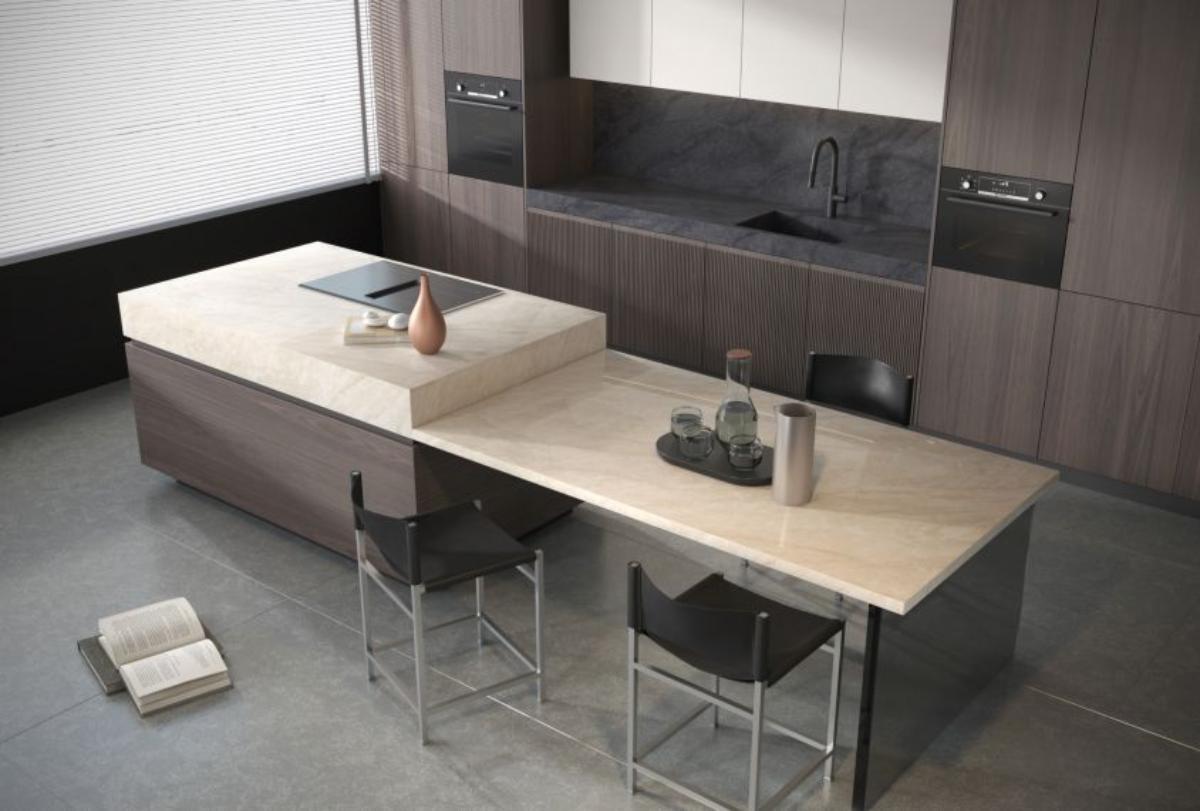 Материал не впитывает жидкости и легко очищается, что делает его гигиеничным и удобным в уходе. Symphony Pristine не боится пятен от пищи, напитков и химических веществ, что особенно важно в кухонной среде.