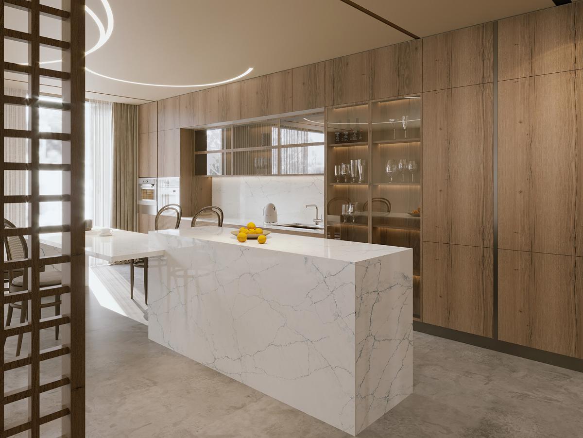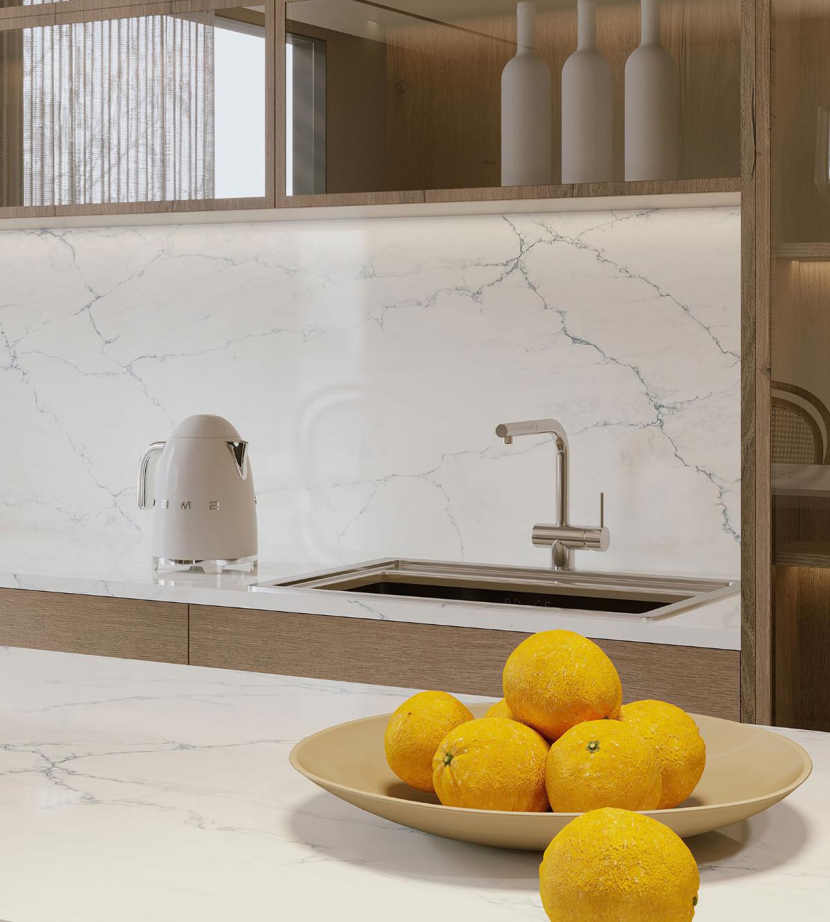 Благодаря своему элегантному дизайну, кварцевый агломерат Alephstone Ariston прекрасно вписывается в различные стили интерьеров — от классического до современного, может стать акцентом в интерьере или гармонично дополнить общую концепцию.