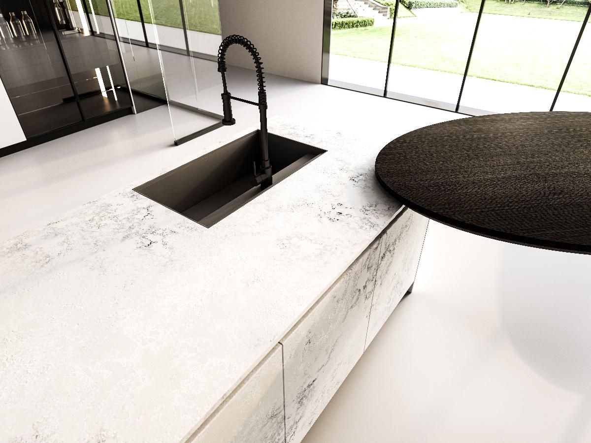 Благодаря своему элегантному дизайну, кварцевый агломерат Alephstone Artico Perlato прекрасно вписывается в различные стили интерьеров — от классического до современного, может стать акцентом в интерьере или гармонично дополнить общую концепцию.