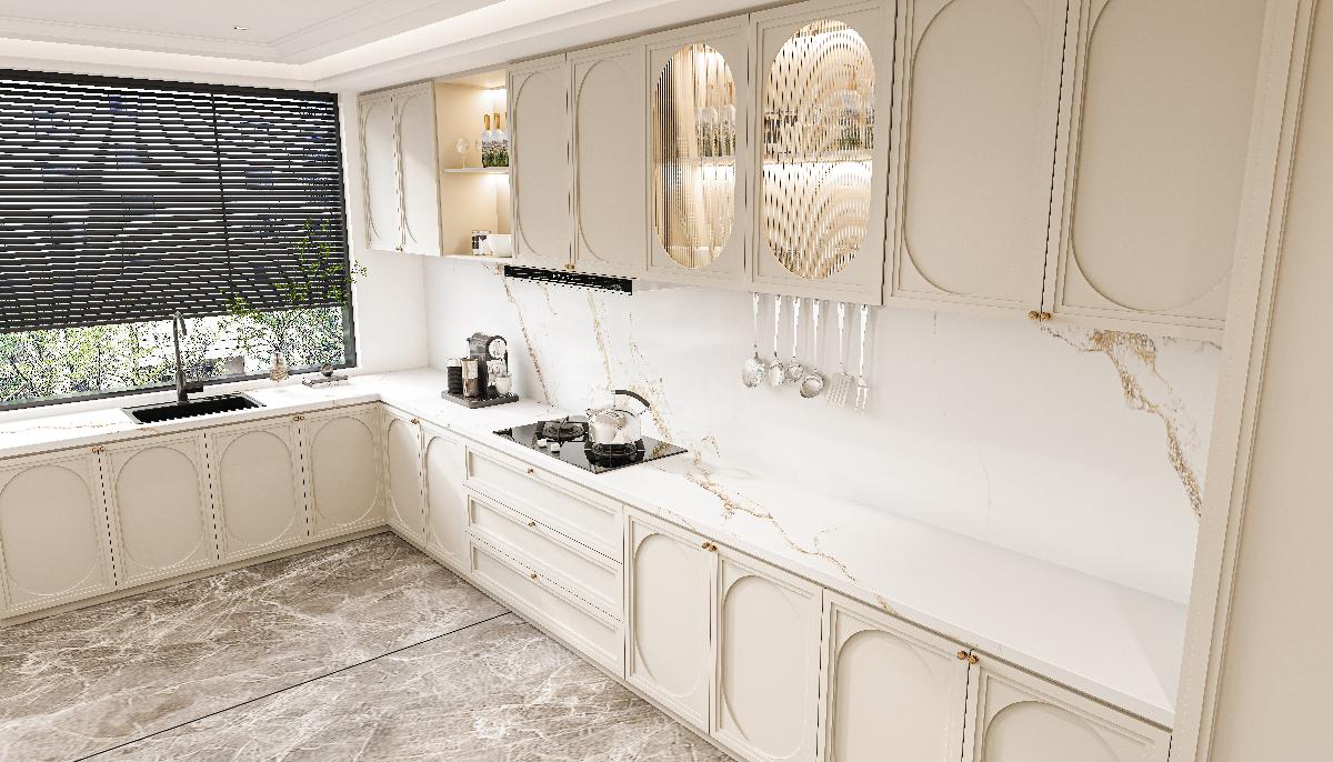 Благодаря своему элегантному дизайну, кварцевый агломерат Alephstone Golden Age прекрасно вписывается в различные стили интерьеров — от классического до современного, может стать акцентом в интерьере или гармонично дополнить общую концепцию.