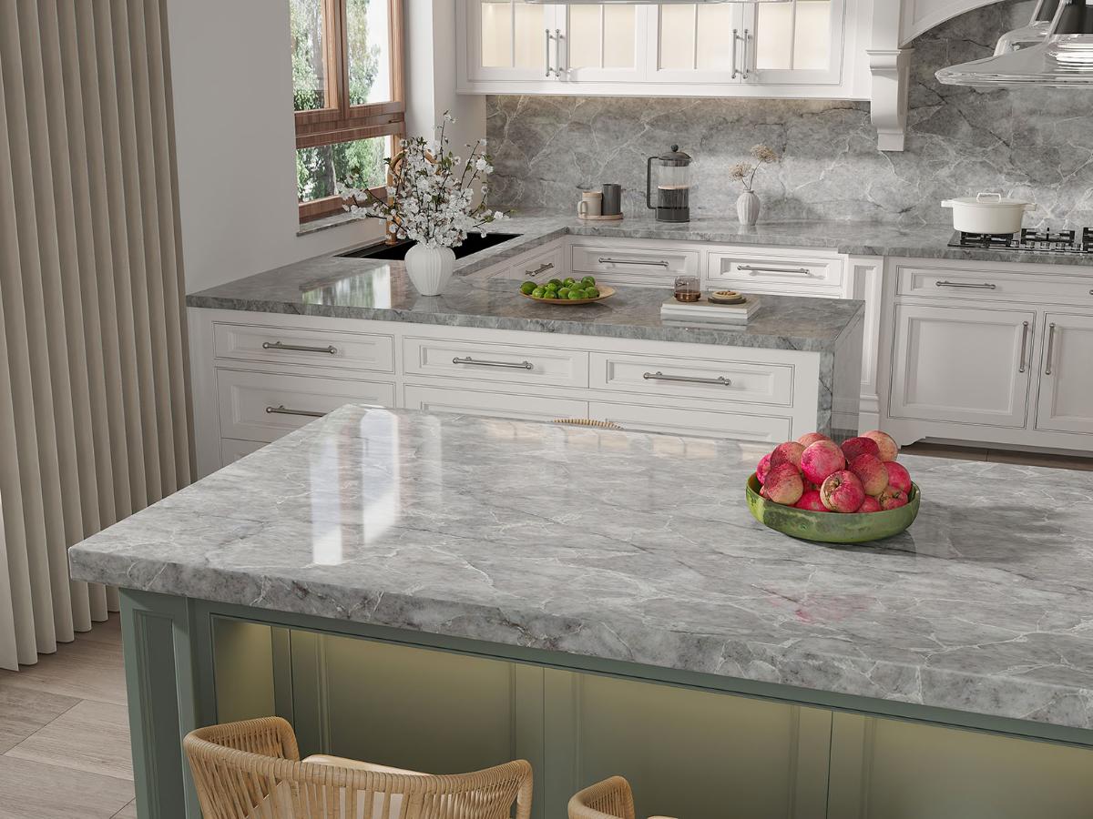 Материал не впитывает жидкости и легко очищается, что делает его гигиеничным и удобным в уходе. Alephstone Ocean Grey не боится пятен от пищи, напитков и химических веществ, что особенно важно в кухонной среде.