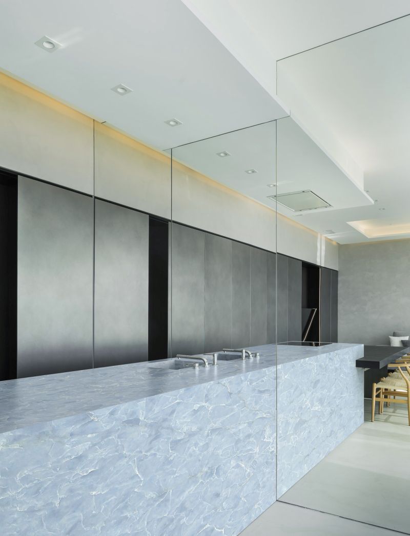 Благодаря своему элегантному дизайну, кварцевый агломерат Alephstone Onyx Blue прекрасно вписывается в различные стили интерьеров — от классического до современного, может стать акцентом в интерьере или гармонично дополнить общую концепцию.