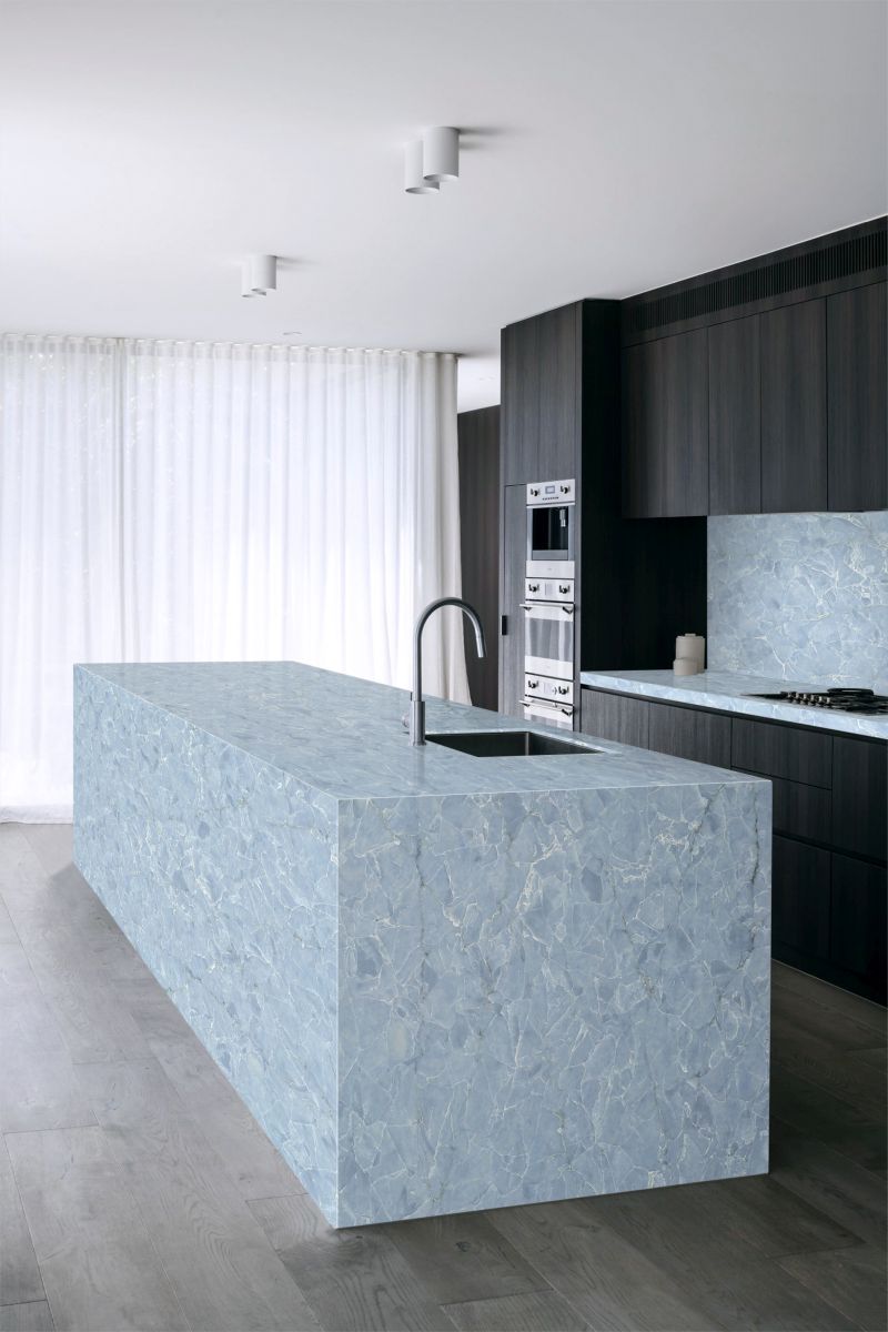 Кварцевый агломерат Alephstone Onyx Blue — это идеальное сочетание красоты и функциональности, уникальный дизайн и высокие эксплуатационные характеристики делают его отличным выбором для создания стильных и практичных интерьеров.