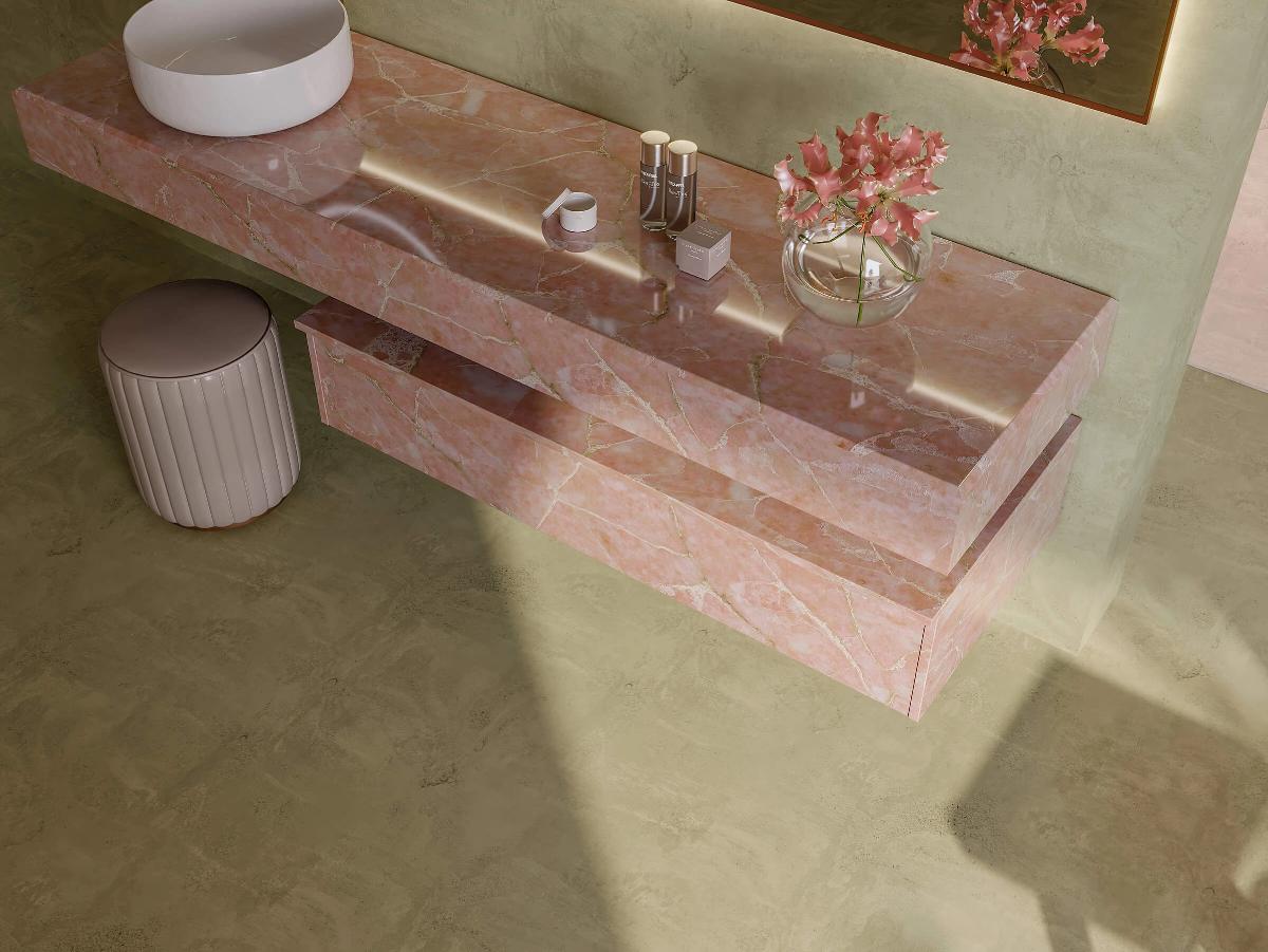 Благодаря своему элегантному дизайну, кварцевый агломерат Alephstone Onyx Rose прекрасно вписывается в различные стили интерьеров — от классического до современного, может стать акцентом в интерьере или гармонично дополнить общую концепцию.