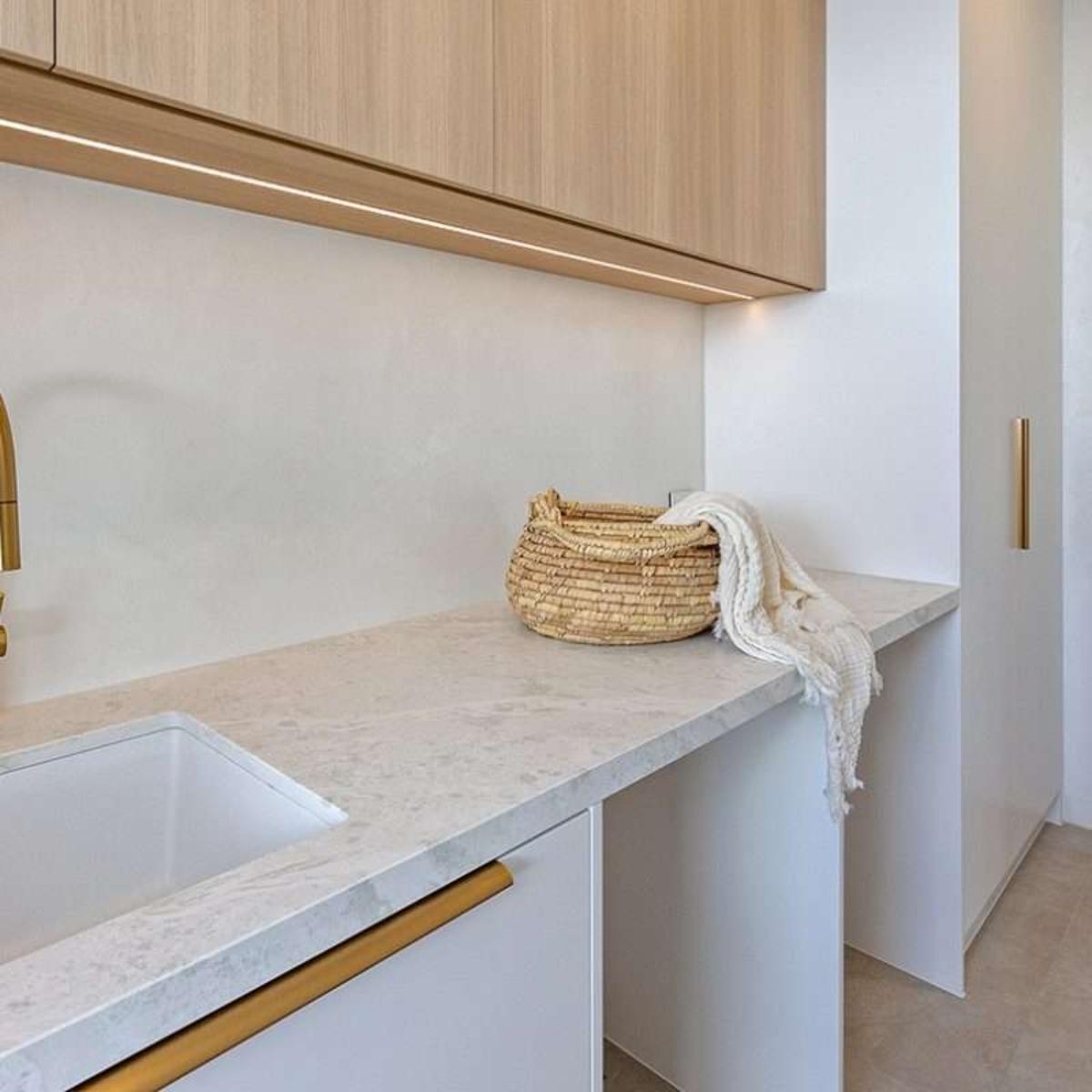 Кварцевый агломерат Alephstone Solomeo содержит 93% натурального кварца, обеспечивая высокую прочностью и устойчивостью к механическим повреждениям, не подвержен сколам и трещинам, что делает идеальным выбором для кухонных столешниц и других высоконагруженных поверхностей.