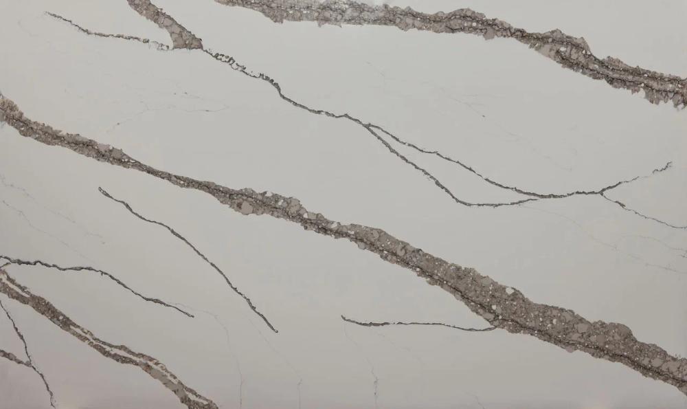 Asterum Bionica (A4104) поверхность сложного, глубокого молочного оттенка с ярко выраженной текстурой, природные прожилки формируют живой, динамичный узор, напоминающий органические структуры: корни, жилы минералов, линии текучей породы, плавно переходят друг в друга, создавая эффект естественного движения и внушая ощущение энергии внутри камня, что делает Asterum Bionica идеальным для создания комфортной атмосферы в любом помещении.