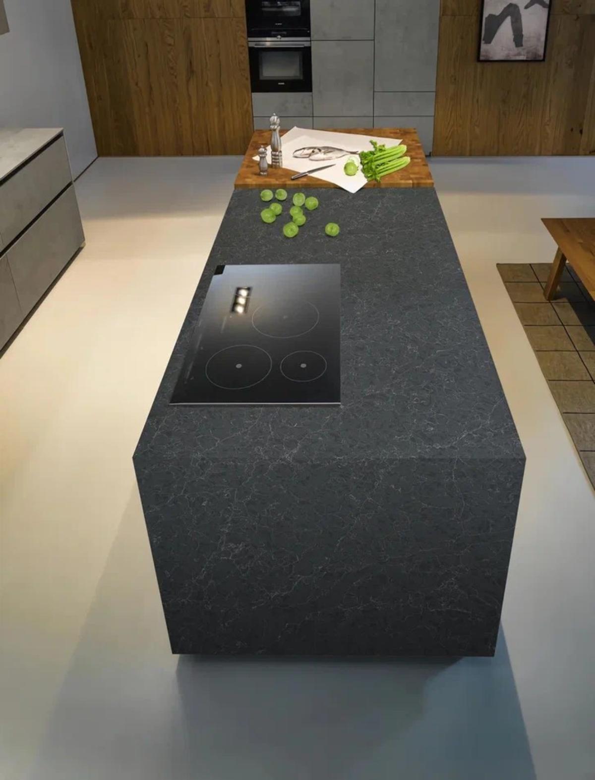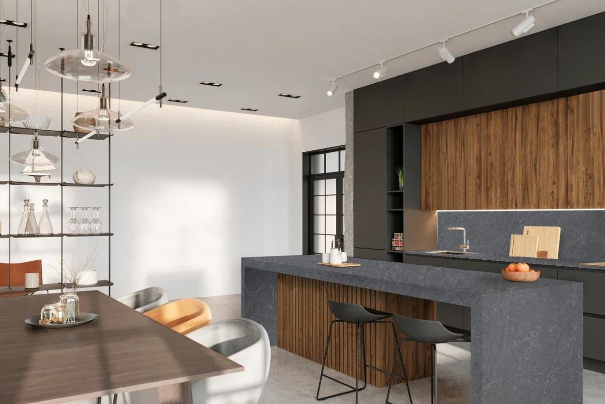 Кварцевый агломерат Asterum Charaur содержит 93% натурального кварца, обеспечивая высокую прочностью и устойчивостью к механическим повреждениям, не подвержен сколам и трещинам, что делает идеальным выбором для кухонных столешниц и других высоконагруженных поверхностей.