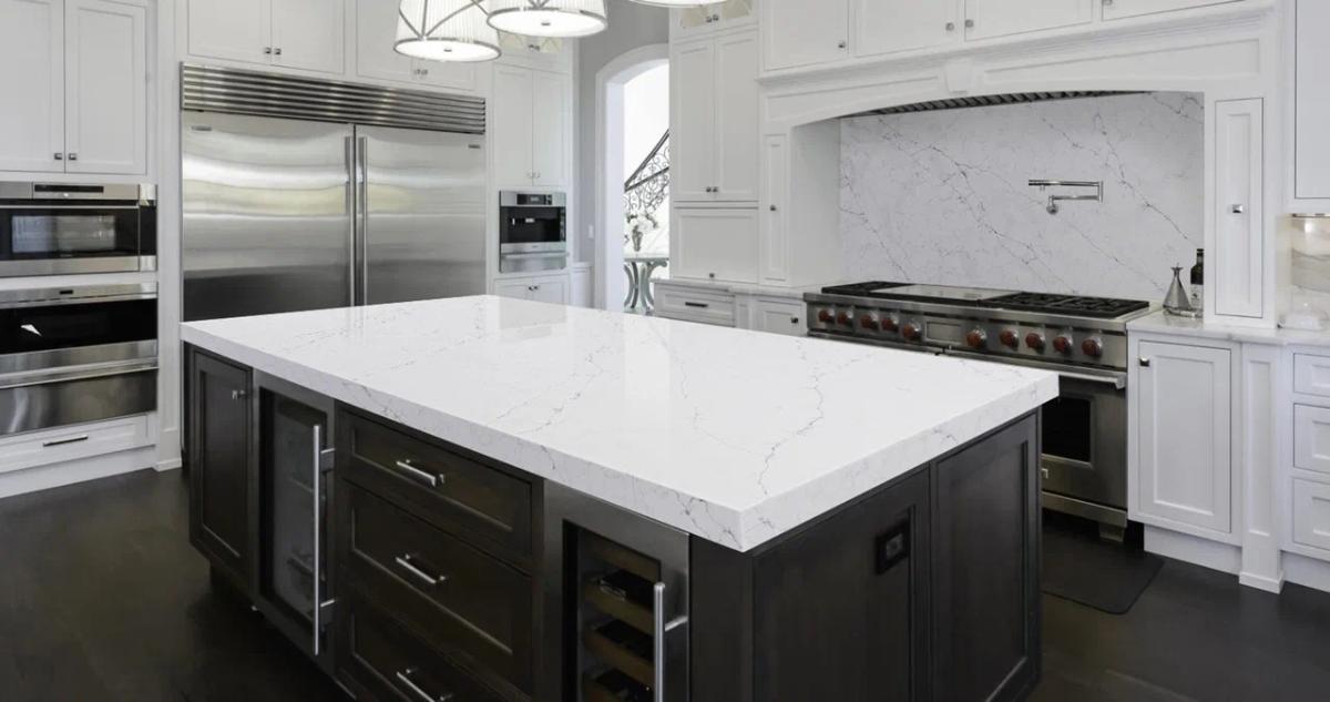 Кварцевый агломерат Asterum Leonardo содержит 93% натурального кварца, обеспечивая высокую прочностью и устойчивостью к механическим повреждениям, не подвержен сколам и трещинам, что делает идеальным выбором для кухонных столешниц и других высоконагруженных поверхностей.