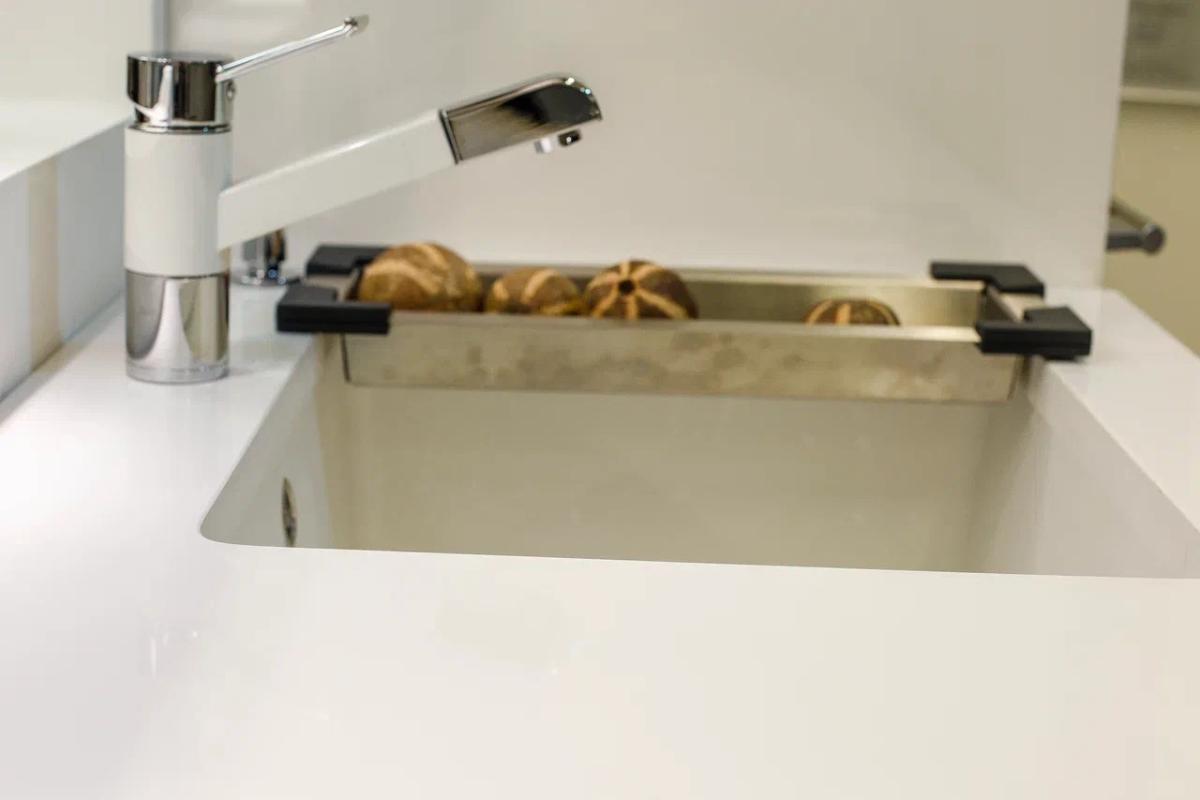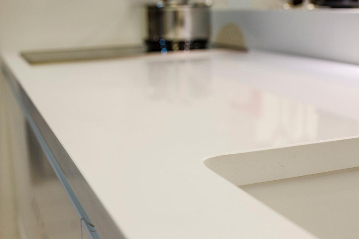 Кварцевый агломерат Asterum Perfecta содержит 93% натурального кварца, обеспечивая высокую прочностью и устойчивостью к механическим повреждениям, не подвержен сколам и трещинам, что делает идеальным выбором для кухонных столешниц и других высоконагруженных поверхностей.