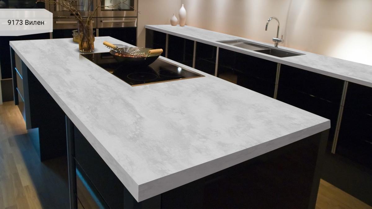 Кварцевый агломерат Avant Вилен содержит 93% натурального кварца, обеспечивая высокую прочностью и устойчивостью к механическим повреждениям, не подвержен сколам и трещинам, что делает идеальным выбором для кухонных столешниц и других высоконагруженных поверхностей.