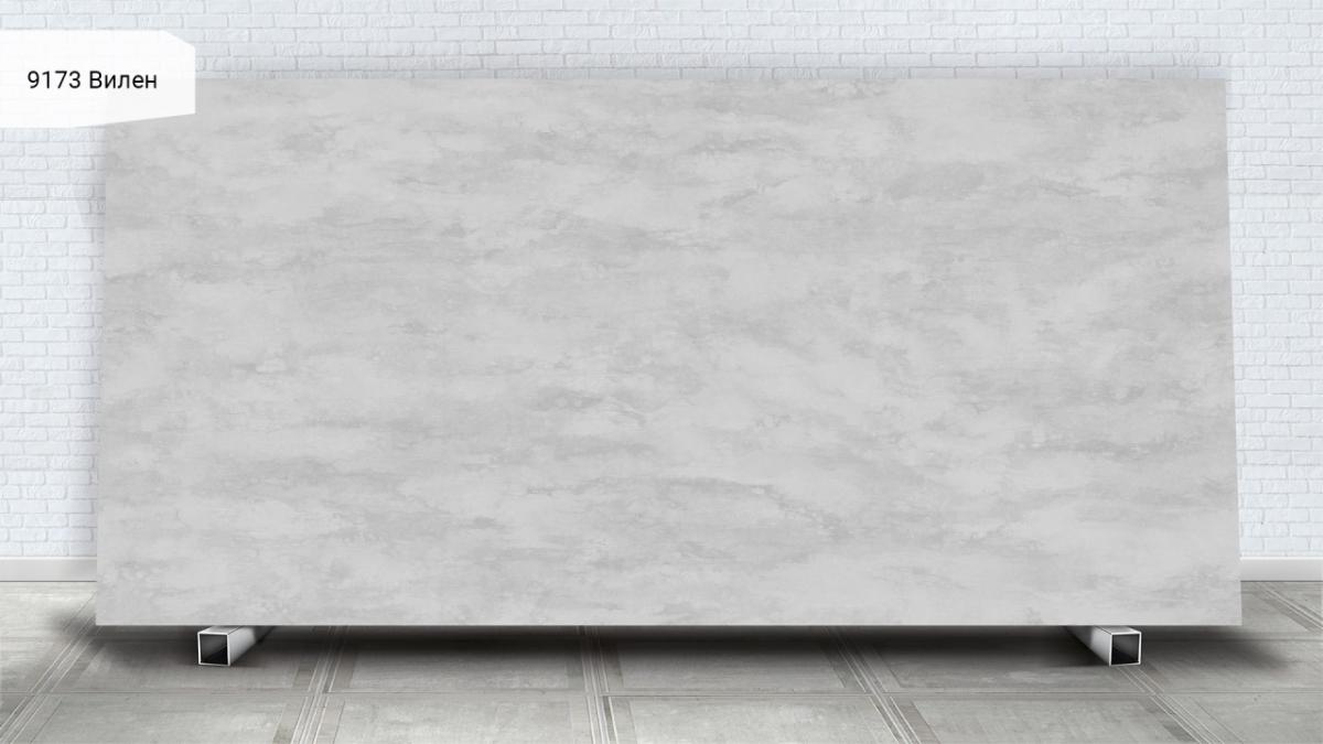 Avant Вилен (9173), изысканный кварцевый агломерат, который очаровывает своей нежной палитрой пастельных оттенков с изысканным мраморным рисунком, где кремовые и бежевые тона гармонично переплетаются с легкими серыми прожилками, создавая утонченную классическую композицию
