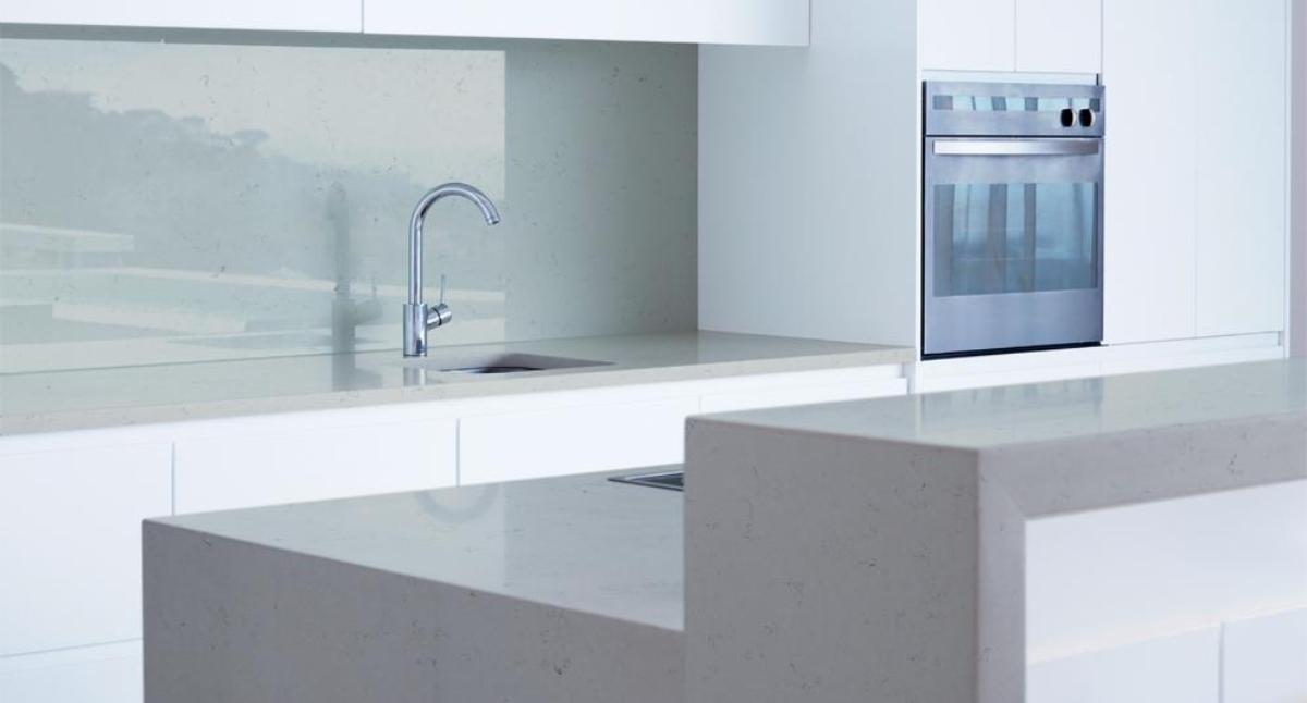 Кварцевый агломерат Coante Hielo содержит 93% натурального кварца, обеспечивая высокую прочностью и устойчивостью к механическим повреждениям, не подвержен сколам и трещинам, что делает идеальным выбором для кухонных столешниц и других высоконагруженных поверхностей.