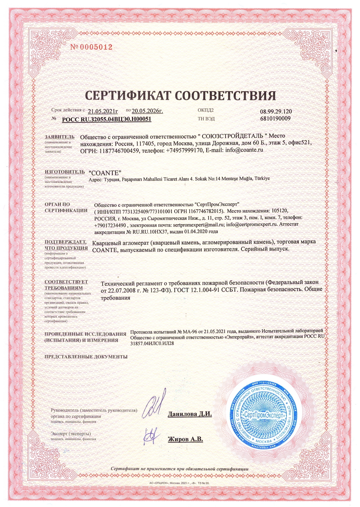 Кварцевый агломерат Coante Snow Flake содержит 93% натурального кварца, обеспечивая высокую прочностью и устойчивостью к механическим повреждениям, не подвержен сколам и трещинам, что делает идеальным выбором для кухонных столешниц и других высоконагруженных поверхностей.