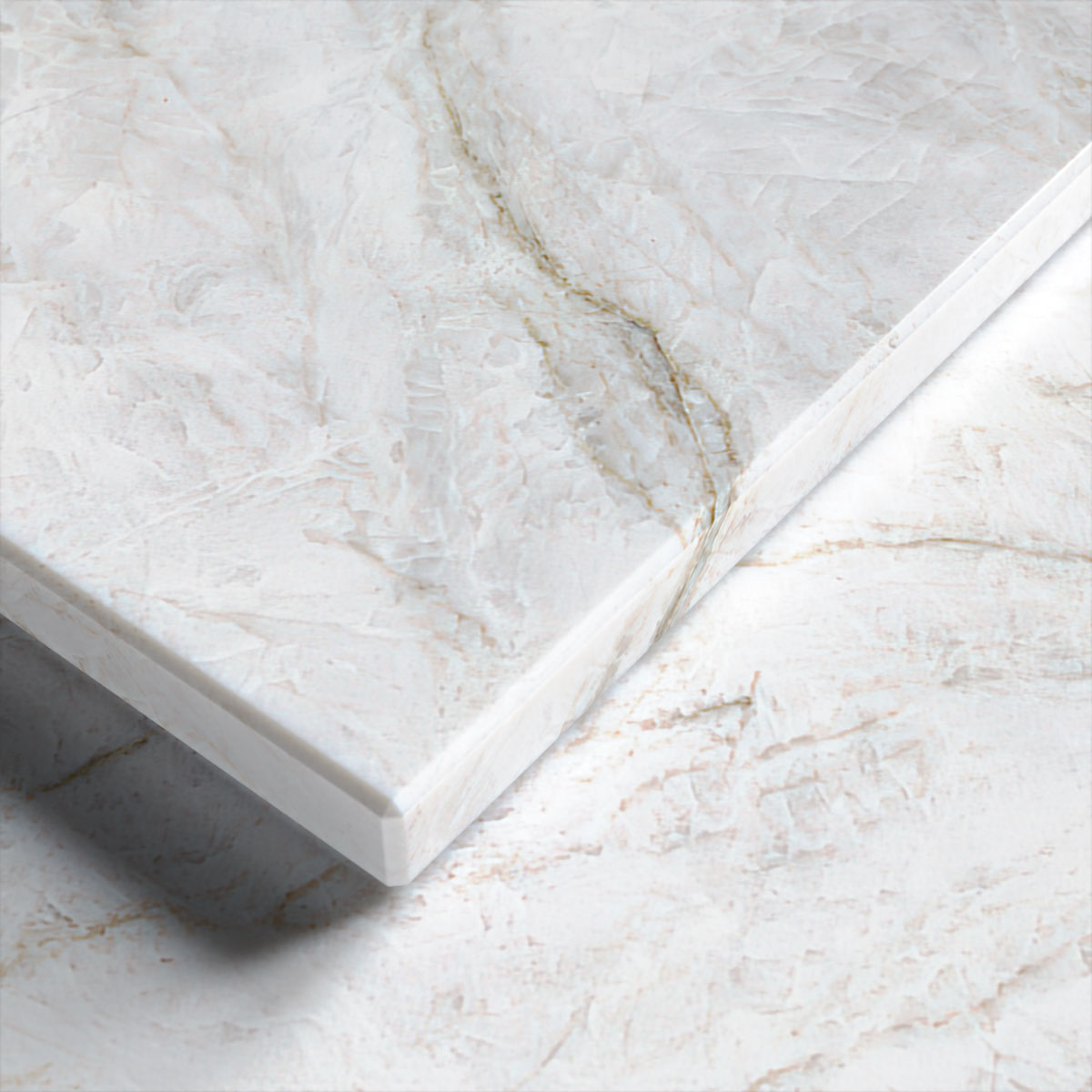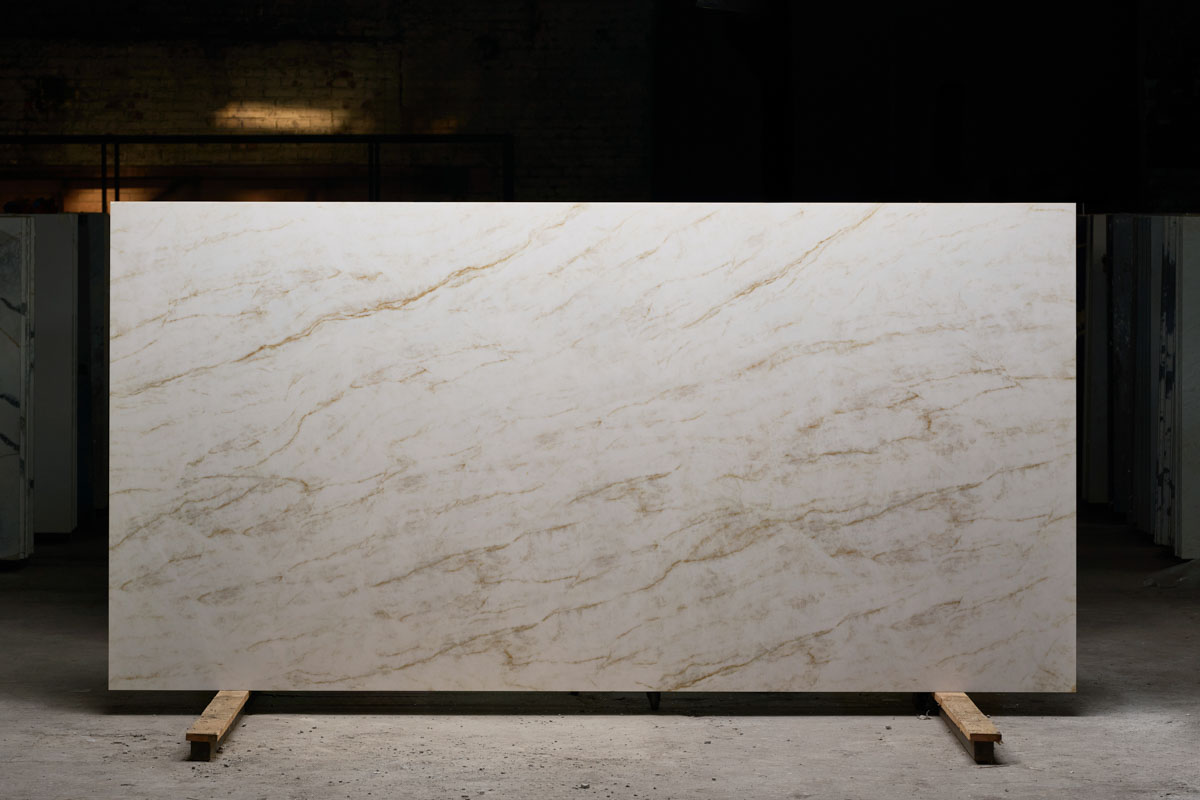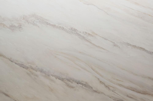Кварцевый агломерат Primax Calacatta Creme содержит 93% натурального кварца, обеспечивая высокую прочностью и устойчивостью к механическим повреждениям, не подвержен сколам и трещинам, что делает идеальным выбором для кухонных столешниц и других высоконагруженных поверхностей.
