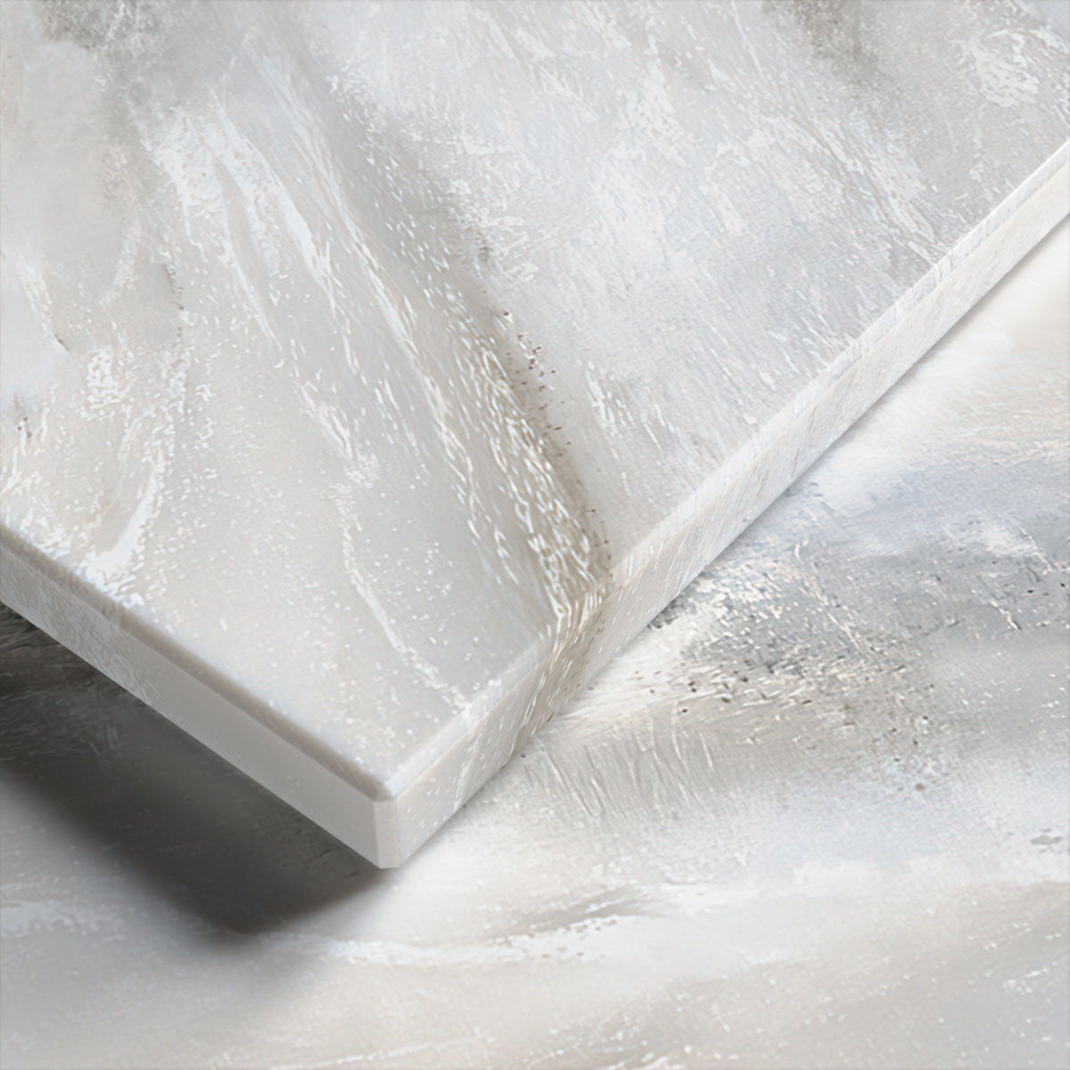 Материал не впитывает жидкости и легко очищается, что делает его гигиеничным и удобным в уходе. Primax Calacatta Infinite Dunes не боится пятен от пищи, напитков и химических веществ, что особенно важно в кухонной среде.