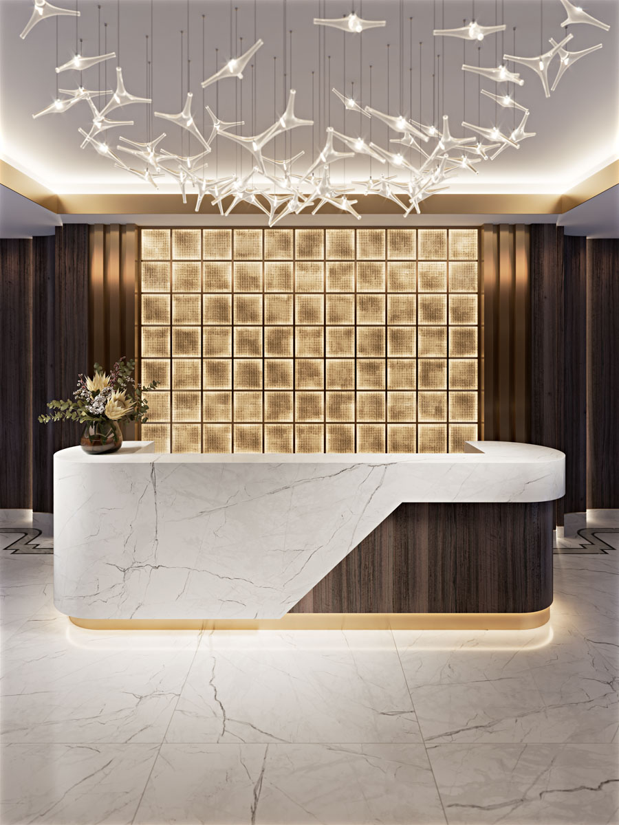 Коммерческие помещения: ресепшены, барные стойки, выставочные стенды.