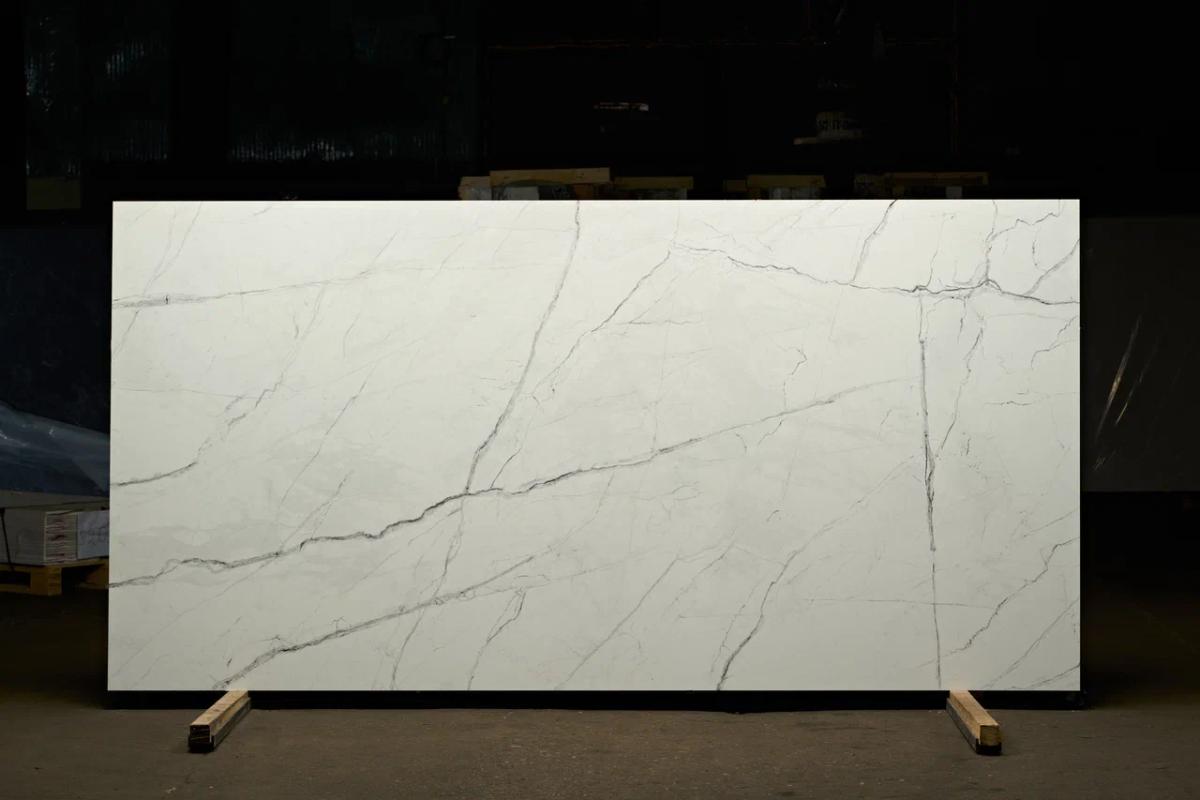 Кварцевый агломерат Primax Calacatta La Carta содержит 93% натурального кварца, обеспечивая высокую прочностью и устойчивостью к механическим повреждениям, не подвержен сколам и трещинам, что делает идеальным выбором для кухонных столешниц и других высоконагруженных поверхностей.