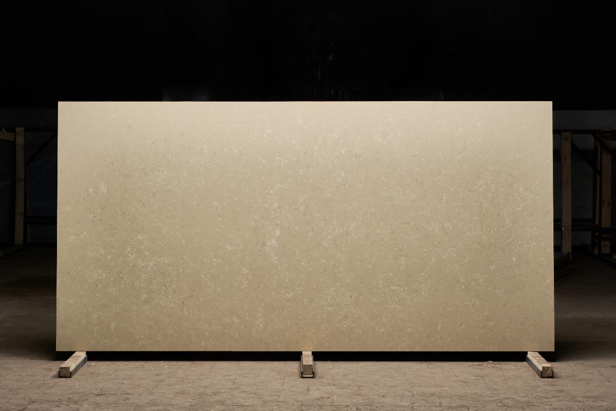Кварцевый агломерат Primax Ivory Grey содержит 93% натурального кварца, обеспечивая высокую прочностью и устойчивостью к механическим повреждениям, не подвержен сколам и трещинам, что делает идеальным выбором для кухонных столешниц и других высоконагруженных поверхностей.