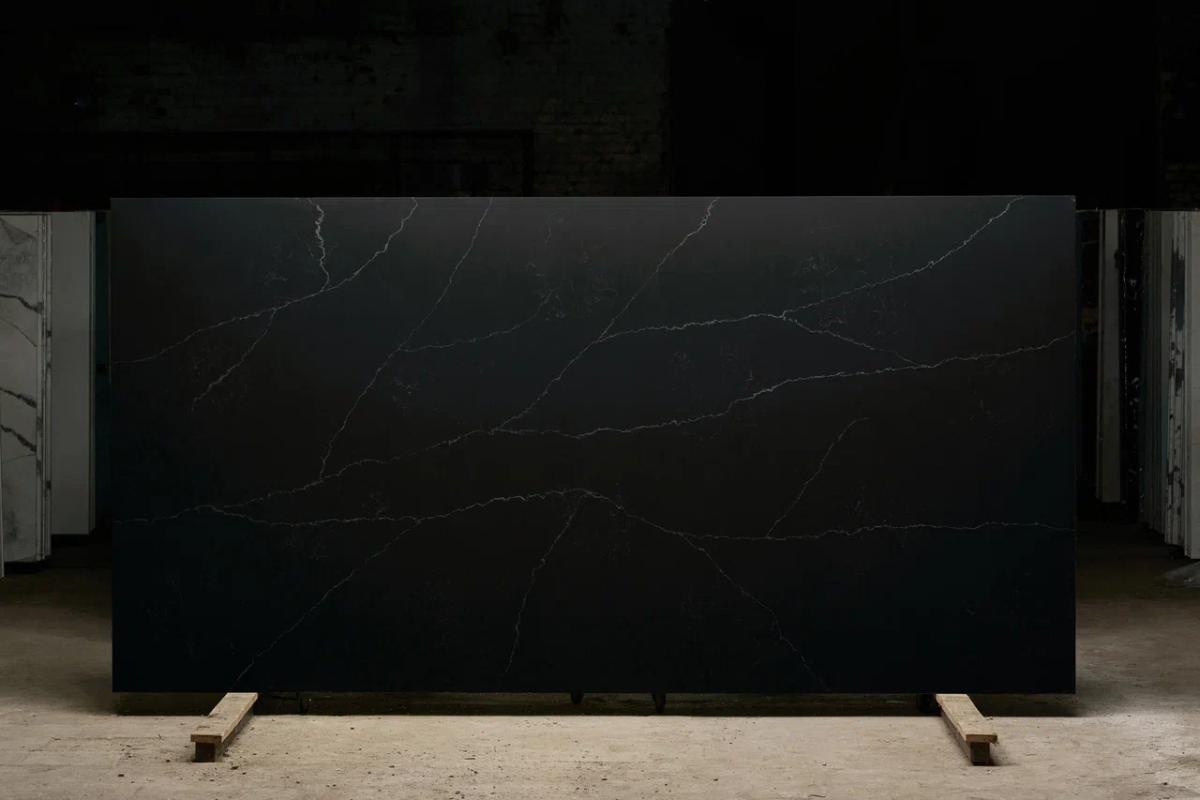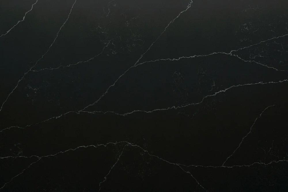 Кварцевый агломерат Primax Noir Satin содержит 93% натурального кварца, обеспечивая высокую прочностью и устойчивостью к механическим повреждениям, не подвержен сколам и трещинам, что делает идеальным выбором для кухонных столешниц и других высоконагруженных поверхностей.
