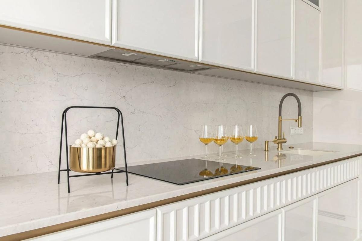 Материал не впитывает жидкости и легко очищается, что делает его гигиеничным и удобным в уходе. Silestone Pearl Jasmine не боится пятен от пищи, напитков и химических веществ, что особенно важно в кухонной среде.