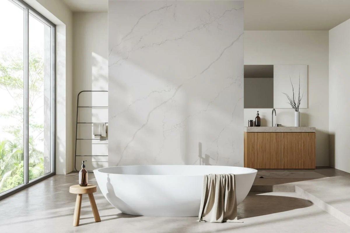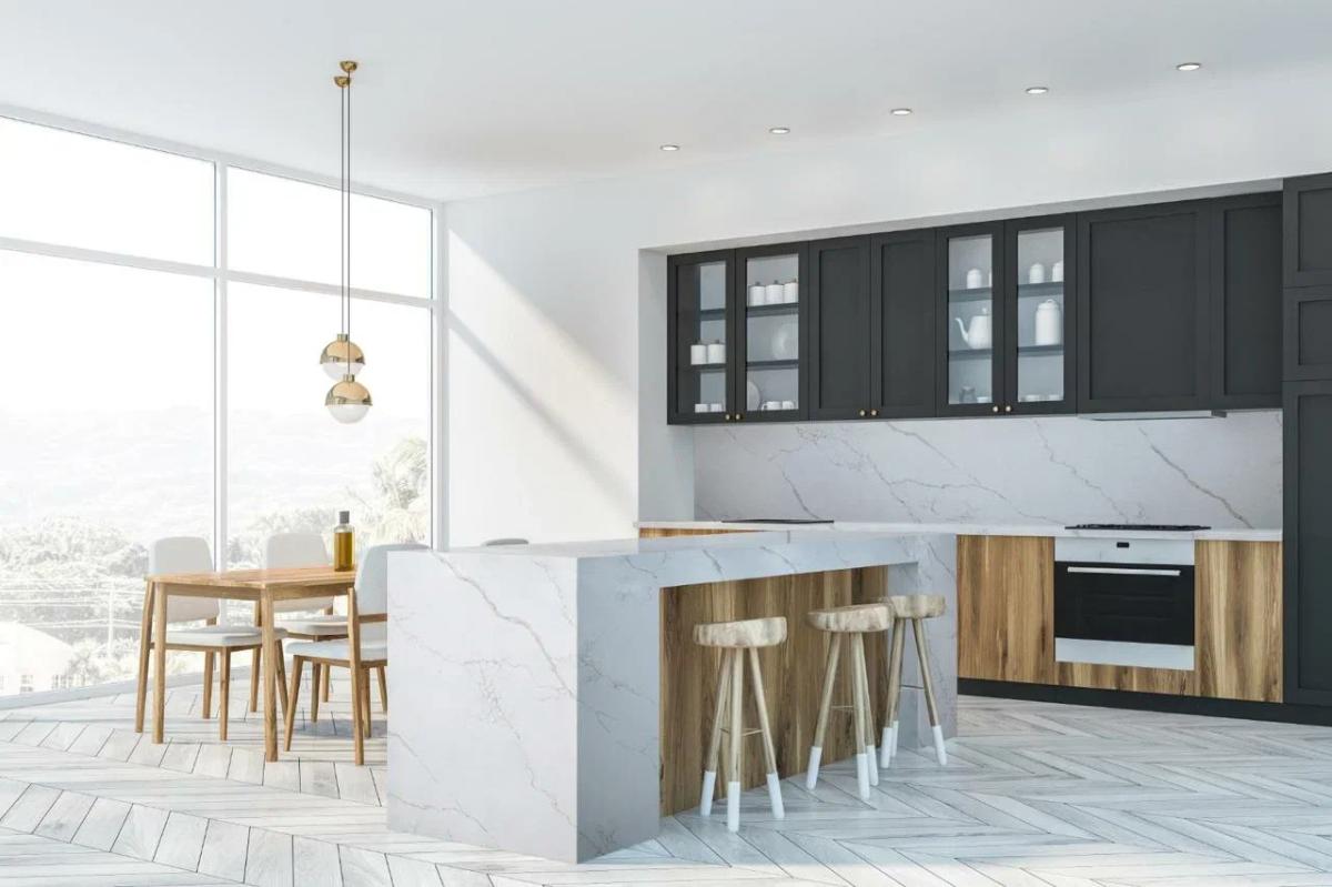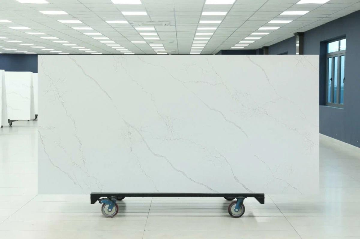 Кварцевый агломерат Stratos Elio содержит 93% натурального кварца, обеспечивая высокую прочностью и устойчивостью к механическим повреждениям, не подвержен сколам и трещинам, что делает идеальным выбором для кухонных столешниц и других высоконагруженных поверхностей.