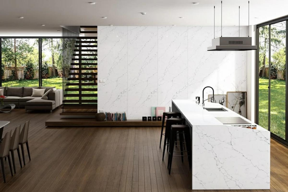 Благодаря своему элегантному дизайну, кварцевый агломерат Vicostone Venatino прекрасно вписывается в различные стили интерьеров — от классического до современного, может стать акцентом в интерьере или гармонично дополнить общую концепцию.