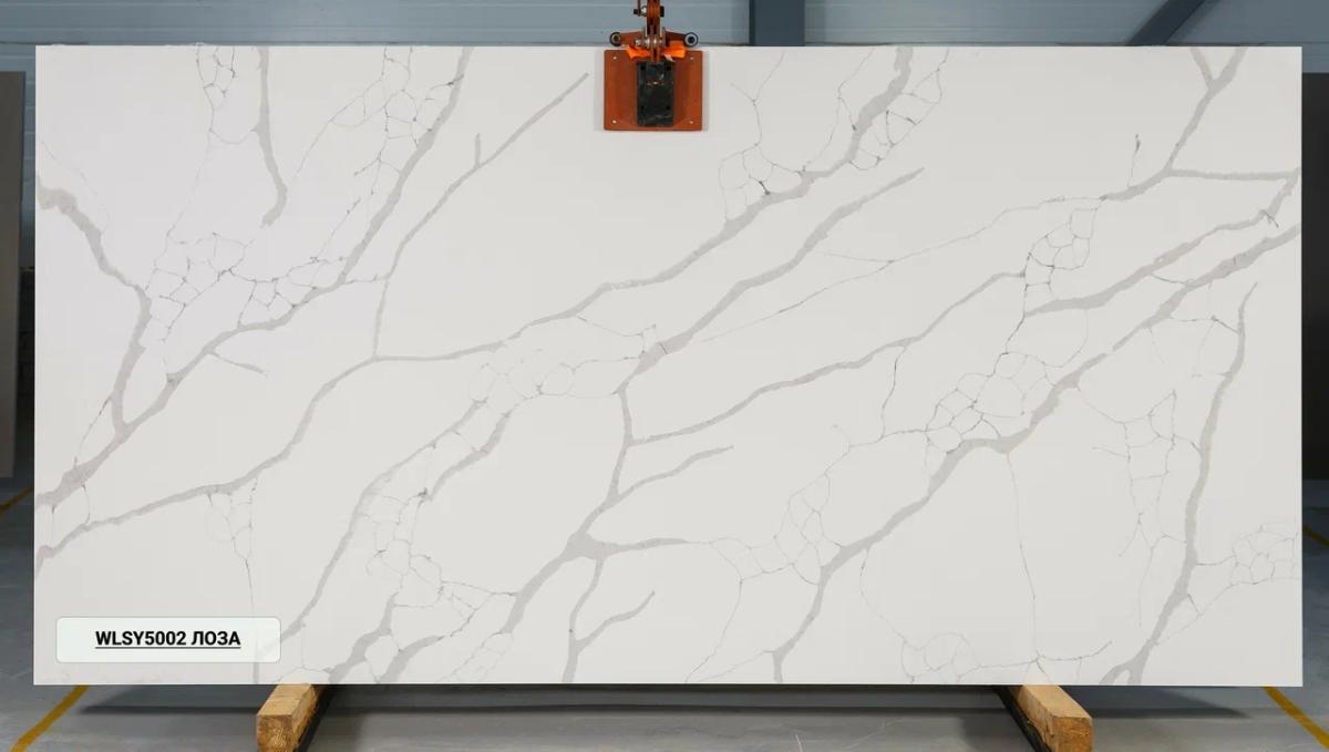 Кварцевый агломерат WSP Stone Лоза содержит 93% натурального кварца, обеспечивая высокую прочностью и устойчивостью к механическим повреждениям, не подвержен сколам и трещинам, что делает идеальным выбором для кухонных столешниц и других высоконагруженных поверхностей.