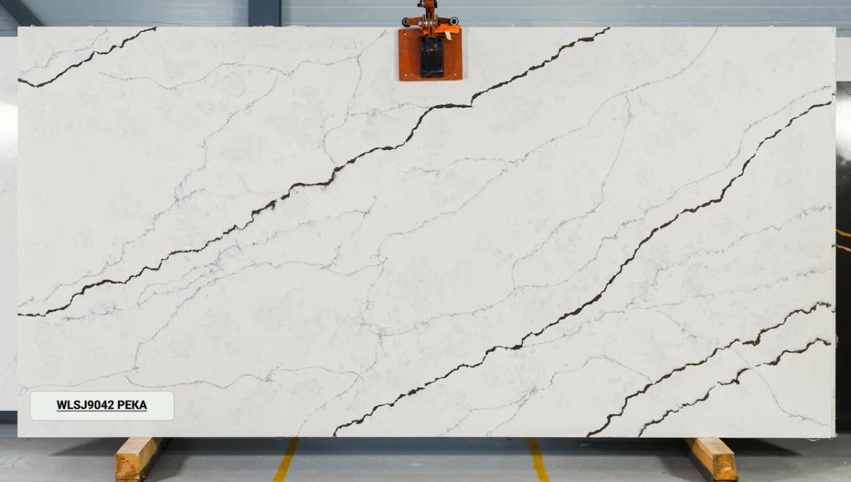 Кварцевый агломерат WSP Stone Река содержит 93% натурального кварца, обеспечивая высокую прочностью и устойчивостью к механическим повреждениям, не подвержен сколам и трещинам, что делает идеальным выбором для кухонных столешниц и других высоконагруженных поверхностей.